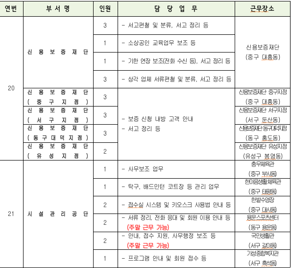 대전광역시 공공기관 아르바이트 정보 알려드립니다. 근무기간부터 월 수령액까지 4대 보험 적용되며 공공기관 아르바이트라는 점에서 비교적 일이 쉽고 공공기관의 업무를 체험해 볼 수 있어 대학생 겨울 방학 아르바이트로 추천드립니다.