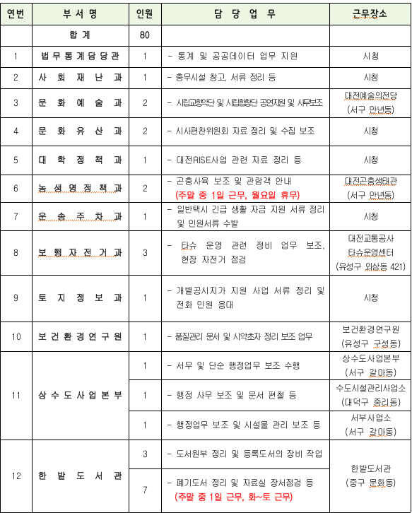 대학원생, 휴학생(군휴학 포함), 제적·자퇴·졸업유예생 및 2011년 이후 대전시청 대학생 아르바이트 근무 경험자는 제외됩니다.