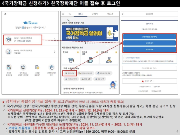 모바일 신청(가능): 한국장학재단 앱 내 “통합 신청” 메뉴를 활용하여 모바일 신청 가능합니다.
